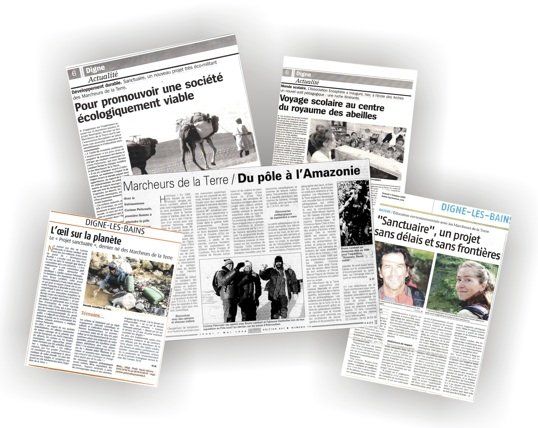 Depuis 1994 les aventures et les initiatives pédagogiques auxquelles Corinne Pelozuello a participées avec les Marcheurs de la Terre ont fait l’objet de plusieurs centaines d’articles de presse diffusés dans les quotidiens et les magazines spécialisés ainsi que d’une cinquantaine de passages TV (France et étranger) et radio.